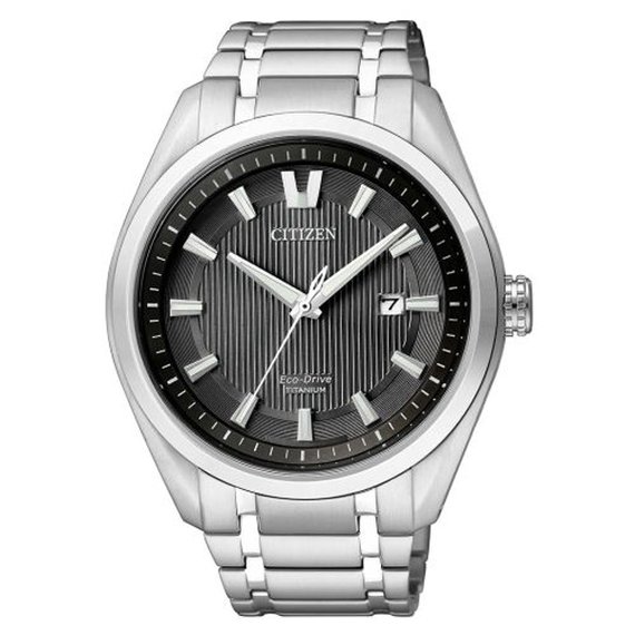 Tyylikäs kestävästä ja keveyestä super titaniumista valmistettu miesten rannekello. Kello on vesitiivis 100 m. Kellossa on valosta latautuva Eco-Drive-koneisto. 42 mm.