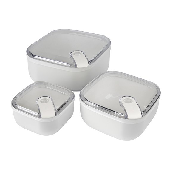 Tyylikäs norsunluunvalkoinen eväsrasia läpinäkyvällä kannella. Läpinäkyvä kansi helpottaa sisällä olevan ruuan tunnistamisen. Rasiassa on patentoitu sulkujärjestelmä sekä tiiviste, jonka ansiosta tuote on 100 % vuodonkestävä. Tuote on mikroaaltouunin ja astianpesukoneen kestävä.