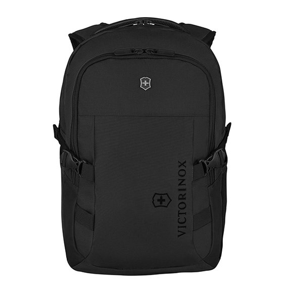Tyylikkäänä reissuun. Sporttinen ja kestävä musta reppu on tehty polyesterista ja sitä koristaa tyylikäs Victorinoxin risti ja kilpi. Reppu on kuin luotu matkustamiseen, sillä siinä on läpimentävä tasku, jonka avulla sen saa kätevästi kiinnitettyä matkalaukun vetokahvaan. Selässä ja sädettävissä olkahihnoissa olevien toppausten vuoksi reppua on mukava kantaa selässä. Repun etutaskussa on kätevät lokerot esimerkiksi passille ja puhelimelle. Tilavuus 20 L. Koko 7,1 x 31 x 45 cm, paino 0,7 kg. Sopii enintään 15-tuumaisille kannettaville tietokoneille.