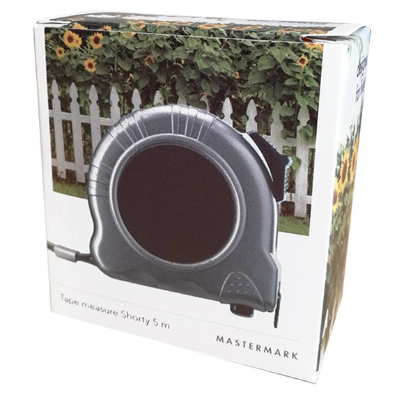 Rullamitan toisella puolella näkyy mitta sentteinä ja toisella puolella tuumina. Tuote tulee lahjapakkauksessa. Mitan pituus on 5 m ja leveys 19 mm. Kätevällä nauhalla saat mitan roikkumaan vaikka seinältä tai vyöstä.