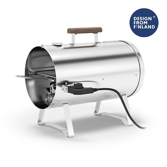 Ruostumattomasta teräksestä valmistettu 1100 W sähkösavustin portaattomasti säädettävällä lämpötilalla ja sisäänrakennetulla lämpömittarilla. Tilava ritilä mahdollistaa monipuolisen savustamisen – voit savustaa lihaa, kalaa, siipikarjaa, juustoa, kasviksia tai jälkiruokia. Savustimen kansi on kätevästi ripustettavissa kahvaan, kun otat ritilän ulos. Mukana toimitetaan kaksi metriä pitkä maadoitettu virtajohto (230V, 50 Hz). Tuotteella on Design from Finland -sertifikaatti.