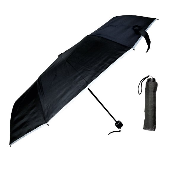 Varaudu muuttuviin sääolosuhteisiin kestävällä ja pieneen tilaan taittuvalla sateenvarjolla. Varjon reunaa kiertää heijastava nauha, joka takaa näkyvyytesi pimeässä. Hopeanväriset yksityiskohdat viimeistelevät varjon. Koko 21". Varjo sisältää pienen säilytyspussin.