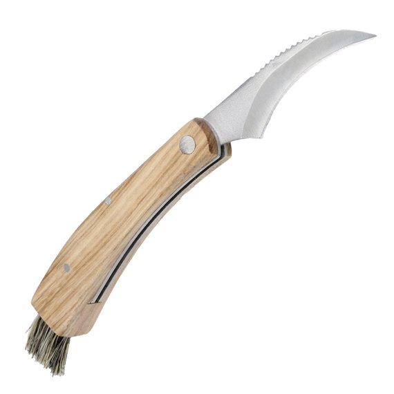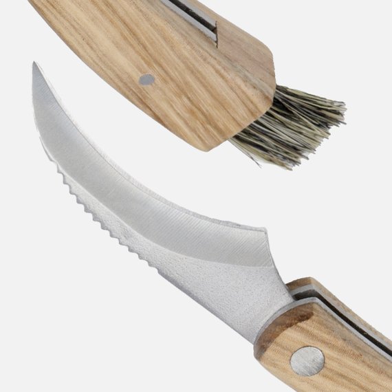 Sienestäjän unelma työkalu. Taitettava sieniveitsi mahtuu tarvittaessa pienen kokonsa ansiosta retkeilijän taskuun. Kaareva terä on valmistettu ruostumattomasta teräksestä ja kahva luonnonkuviollisesta puusta. Veitsen harjakset ovat valmistettu villisian karvasta. Mukana musta polyesteri säilytyskotelo.