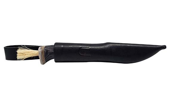 Kotimainen, Lapissa käsityönä valmistettu sieniveitsi. Terä on ruostumatonta terästä ja sen pituus on 5,5 cm. Kahva on mustaa visakoivua ja sen päässä on puhdistusharja. Toimitetaan mustalla nahkaisella tupella.