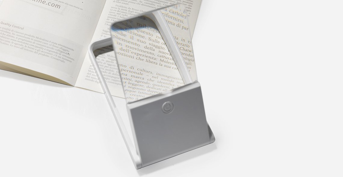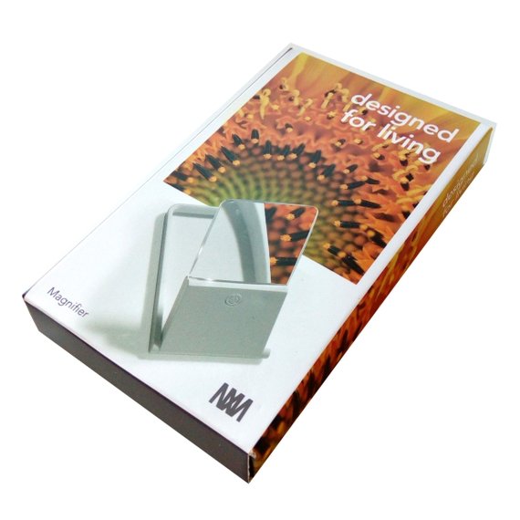 Kolminkertaisen suurennustehon lisäksi tämä valkoinen suurennuslasi on varustettu kahdella valkoisella LED-valolla. Siro ja kokoontaitettava apuväline kulkee helposti mukana. Suurennuslasi on kooltaan 101 x 58 x 9 mm ja pakkaus sisältää paristot.