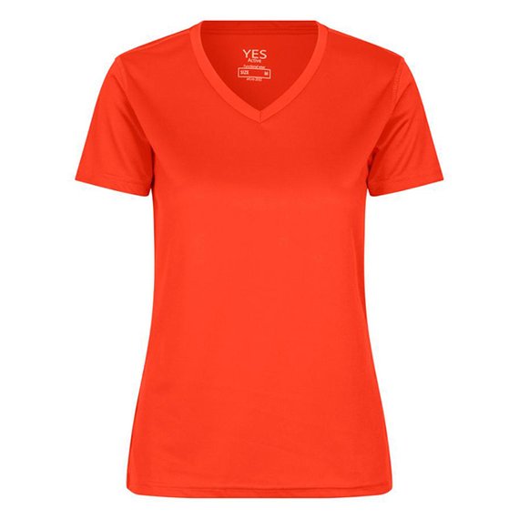 Naisten käytännöllinen t-paita V-aukolla urheiluun. Kosteutta läpäisevä, hengittävä ja nopeasti kuivuva materiaali. Materiaali 100% polyesteri. 130 g/m². Koot XS-3XL. OEKO TEX sertifioitu.