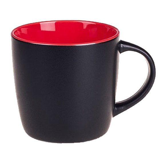 Erittäin suosittu mainosmuki, jossa on moderni, matta lasite. Kiiltävä, värikäs sisäpuoli luo erinomaisen kontrastin mustan satiinisen ulkopinnan kanssa. Toimitusaika vedoksen hyväksymisestä noin 5 vkoa. Hinnat sisältävät mukin ilman painatusta, pyydäthän tarjouksen haluamallesi painatukselle erikseen.