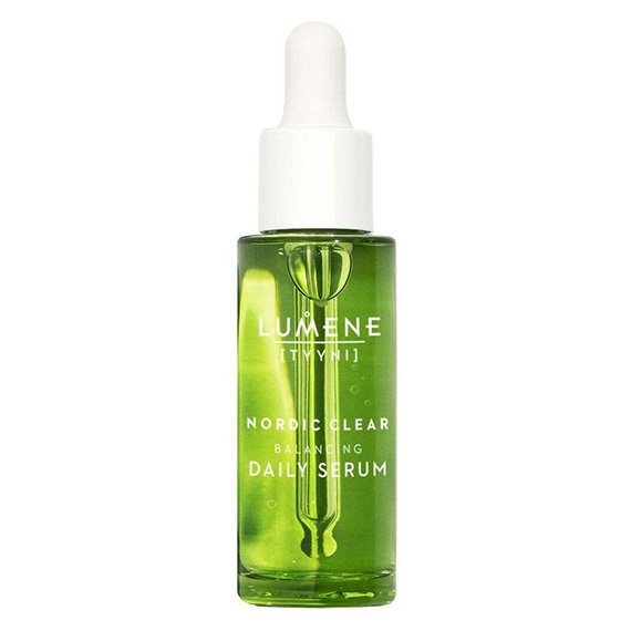 Lumene TYYNI Tasapainottava seerumi rasvoittuvalle, sekaiholle ja epäpuhtauksiin taipuvaiselle iholle sisältää tehokkaan yhdistelmän tasapainottavaa pohjoista mesiangervoa ja rauhoittavaa pohjoista ruusujuurta*. Se vähentää ylimääräistä kiiltoa, auttaa häivyttämään ihohuokosia, epäpuhtauksia ja punaisuutta, sekä kosteuttaa tehokkaasti. Sinkkiglukonaattia ja niasiiniamidia sisältävä kevyt vesipohjainen seerumi tuntuu raikkaalta ja imeytyy nopeasti ilman tahmeaa tunnetta, jättäen ihon luonnollisen mattapintaiseksi sekä tasapainoisen ja hyvinvoivan näköiseksi. Ei-komedogeeninen.