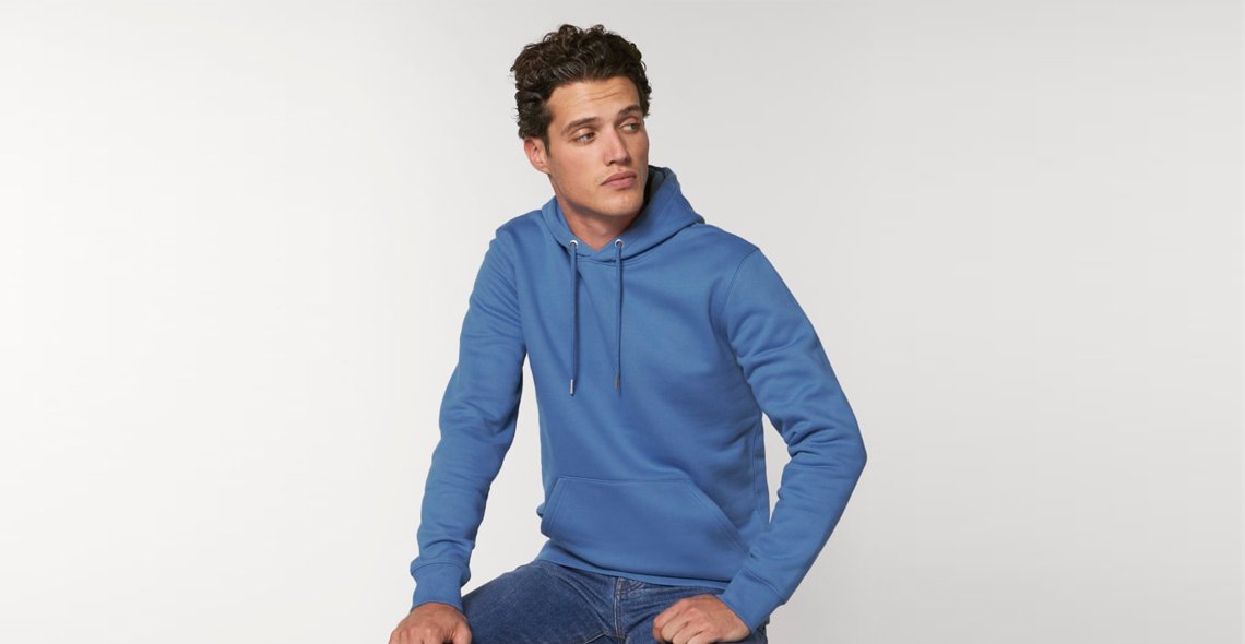 Huppari kierrätetystä polyesteristä (15 %) ja orgaanisesta, rengaskehrätystä kampapuuvillasta (85 %). Ryhdikäs, kaksikerroksinen huppu, metalliset narunreiät, pyöreät kiristysnarut metallisilla päillä ja kengurutasku edessä. Paino 350 g/m². Koot XXS-5XL.