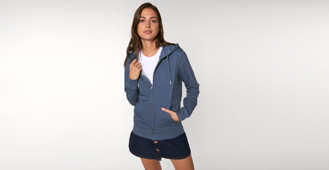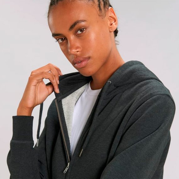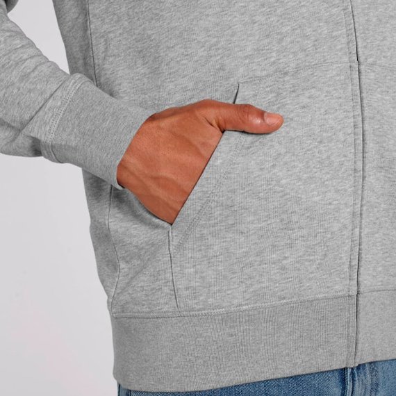 Huppari vetoketjulla kierrätetystä polyesteristä (15%) ja orgaanisesta, rengaskehrätystä kampapuuvillasta (85%). Hupparin hupussa kiristysnauhat sekä edessä taskut. Joustinneuletta hihansuissa ja helmassa. Paino 300 g/m². Koot XXS-4XL.