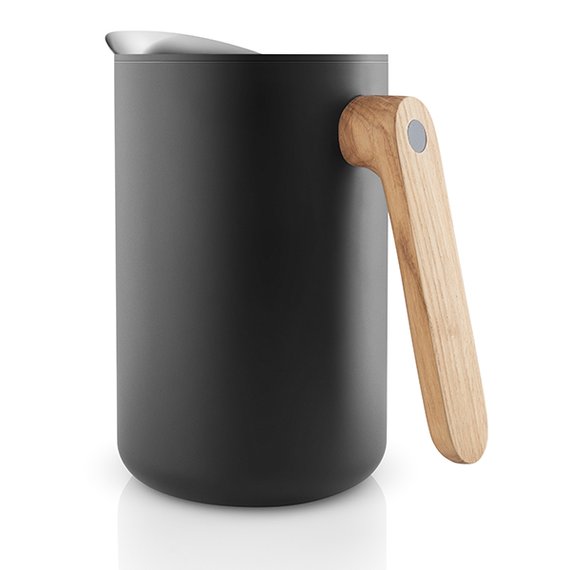 Mattapintainen ja tammikahvainen Nordic Kitchen -termoskannu on kattauksen ehdoton helmi! Kannussa on ruostumattomasta teräksestä valmistettu, erittäin kestävä sisus ja kaatonokka, joka on Eva Solon tapaan 100% tipaton.