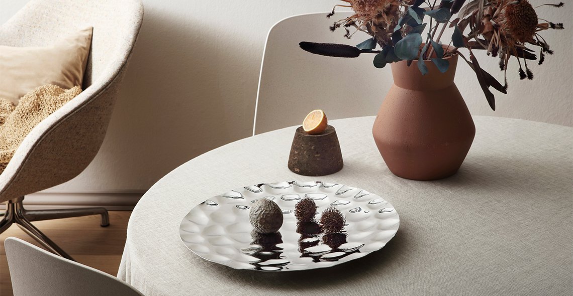 Ruostumattomasta teräksestä valmistettu tarjoiluvati sai inspiraationsa pisaroiden tanssista veden pinnalla. Tarjoiluvadin on suunnittelut Heikki Hartikainen. Tuotteet valmistetaan Suomessa. Koko: Ø375 mm.