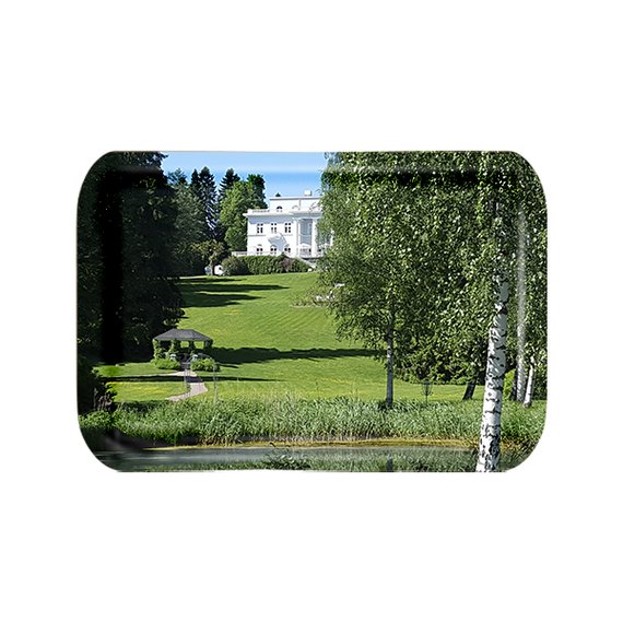 Neliskulmaisen koivuviilusta valmistetun kotimaisen tarjottimen koko on 27cm x 20 cm. Hintaan kuuluu valokuvapainatus tarjottimeeen ja pohjaan logon painatus sekä mallikappale. Pinnoitukseksi voi valita kiiltävän pinnan tai mattapinnoitteen. Toimitusaika noin 3 viikkoa. Pyydä tarjous omasta toteutuksesta. Esimerkkihinta on 50 kappaleelle.