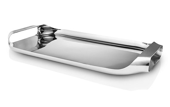 Linjakkaan elegantti kiillotetusta ruostumattomasta teräksestä valmistettu tarjotin sopii paitsi tarjoiluun myös esimerkiksi baaritarvikkeiden tai kynttilöiden alustaksi. Tukevat kädensijat helpottavat kantamista, ja matala muodon ansiosta tarjotin vie vain vähän säilytystilaa. Voidaan pestä astianpesukoneessa. Mitat: 40 x 440 x 250 mm. Paino 790 g. Yhteensopiva luistamaton silikonimatto (530603) saatavana lisätarvikkeena.