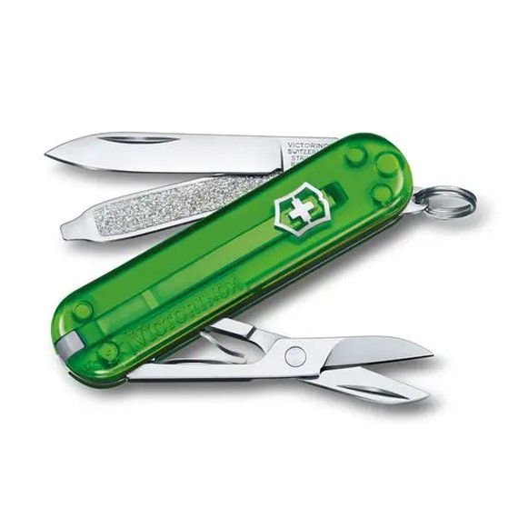 Taskuveitsi Classic SD Transparent Green Tea Victorinox pakkauksella