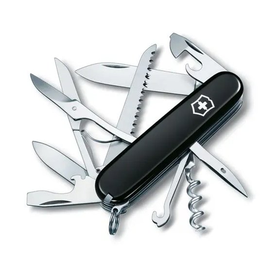 Sveitsissä valmistetussa taskuveitsessä 15 eri toimintoa: kalvin, avainrengas, monikäyttöinen koukku, pieni terä, hammastikku, purkinavaaja, ruuvimeisseli 3 mm, korkkiruuvi, pinsetit, pullonavaaja, ruuvimeisseli 6 mm, kaapelin kuorija, sakset, iso terä ja puusaha. Mitat 21 x 91 x 26 mm. Paino 97 g.