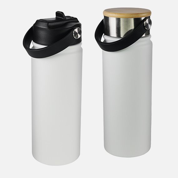 Ruostumattomasta teräksestä valmistettu termospullo kahdella eri korkilla. Valitse pulloosi ajaton bambu- tai käytännöllinen sporttikorkki. Molemmissa korkeissa muovinen kahva, josta pulloa on helppo kantaa mukana. Valkoinen jauhemaalattu pinta tarjoaa laajan painoalueen brändillesi. Astiapesukoneen kestävä. Tilavuus: 500 ml. Toimitetaan pahvisessa lahjapakkauksessa.