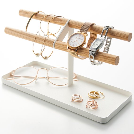 Tosca-sarjan koru- ja kelloteline sopii täydellisesti monenlaisten pienten asusteiden säilytykseen. Erityisesti kellot ja rannekorut asettuvat kauniisti ja käytännöllisesti telineen saarnipuisille tangoille. Alaosan tarjotin puolestaan sopii hyvin esimerkiksi silmälasien ja sormusten säilytykseen. Suunniteltu Japanissa.