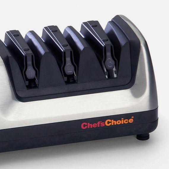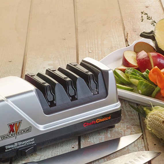 ”Jos sinulla on kokoelma arvokkaita veitsiä, niin tämä on sinun teroittimesi. Trizor XV:ssä on kolme teroitusvaihetta, jotka muodostavat veitseen tasaisen, uskomattoman terävän terän. Veitsi leikkaa vaivattomasti kypsät tomaatit ja pysyy terävänä kauemmin kuin muilla välineillä teroitettaessa”