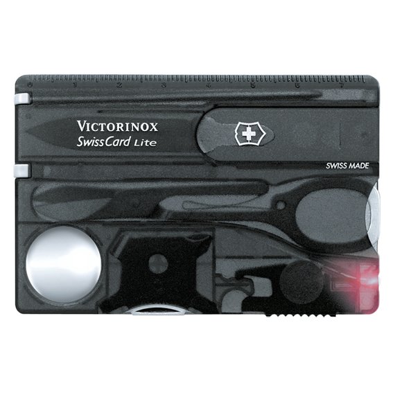 SwissCard Lite on hämmästyttävän monipuolinen, luottokortin mallinen monitoimityökalu, joka kätkee sisälleen 13 eri työvälinettä ja toimintoa. Onnistuneen muotoilunsa ansiosta se sopii erinomaisesti lompakkoon, käsilaukkuun, salkkuun tai vaikkapa rintataskuun - sekä miehille että naisille. Tuotteessa on muun muassa seuraavat toiminnot: teräsneula, sakset, pinsetit, kuulakärkikynä, 2 ruuvitalttaa, 2 ristipääruuvitalttaa ja LED-valo.