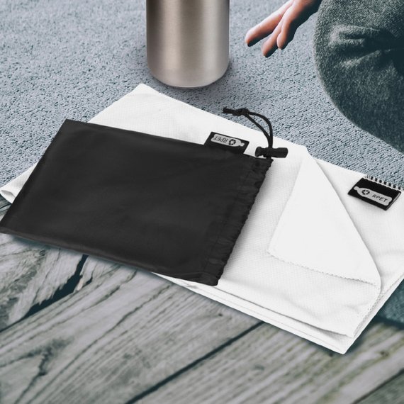 Käytännöllinen urheilupyyhe jokaisen kuntoilijan kassiin. Pyyhe imee kosteuden tehokkaasti ja kuivuu nopeasti. Koko 80 x 30 cm. Toimitetaan pienessä, suljettavassa, kierrätetystä RPET-materiaalista valmistetussa pussissa kuljetusta varten. Koko 15 x 11,5 cm. Hinnat sisältävät 1-väripainatuksen ja aloituskulun.