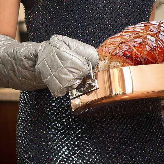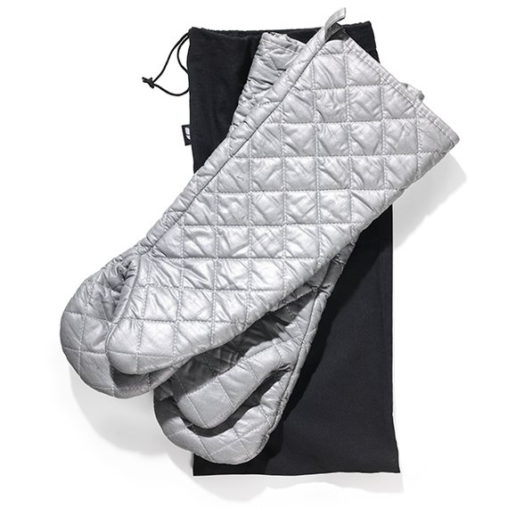 Käsivartta myöten kokkaamaan! Valmista kauden herkut turvallisesti tai ilahduta grillimestaria upeilla uunikintailla. Himmeän hopeansävyiset Tapio-uunikintaat suojaavat tehokkaasti käsiä kuumilta astioilta ja pinnoilta. Pintamateriaali 100 % puuvilla, täyte kierrätettyä puuvillaa, sisämateriaali 40 gsm non-woven -kangasta. Kyynärtaipeeseen ulottuva 44 cm kinnas kestää 200 °C kuumuutta. Mustassa puuvillapussissa on kaksi kinnasta.