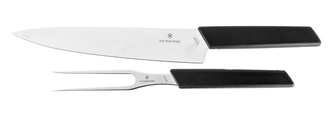 Klassinen ja juhlava leikkuuveitsi- ja haarukka ovat taattua Victorinox-laatua. Sveitsiläisestä ruostumattomasta teräksestä valmistetut työvälineet tekevät lihan ja paistin leikkaamisesta taidetta. Välineissä on synteettiset kahvat, jotka takaavat tukevan ja pitävän otteen. Veitsi 22 cm ja haarukka 15 cm. Elinikäinen valmistustakuu.