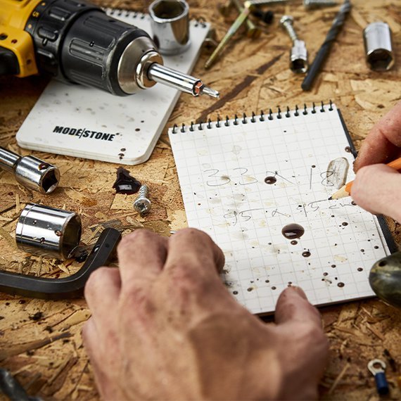 Parhaat ideat voivat syntyä odottamattomissa olosuhteissa. Suomessa valmistettuun säänkestävään Modestone-vihkoon voi tarvittaessa kirjoittaa vaikka veden alla. Idea vedenkestävästä vihosta heräsi Modestone-vihkojen kehittäjän Kalle Kinnusen armeija-aikoina.