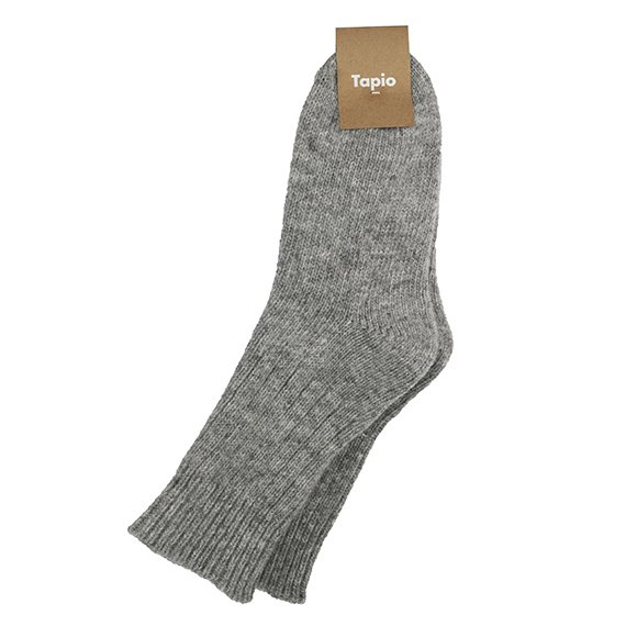 Aidot kotimaiset Tapio-villasukat pitävät syysviileillä varpaat ihanan lämpiminä. Mukavasti jalkaan istuvien sukkien väri on harmaa. Sukkien valmistusmateriaali on 70% villa ja 30% polyamidi.